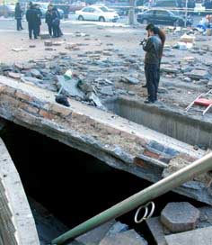 The blast left a nine-square-meter crater in the ground and a