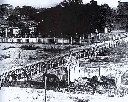 Commander-in-Chief Waldersee held a parade I front of the gate of Wumen to demonstrate support to the Allied Forces in their negotiations with the Qing Government.