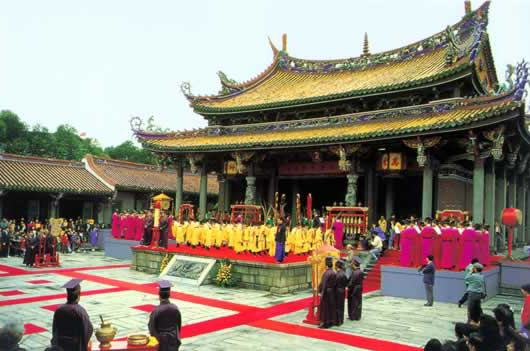 A grand memorial ceremony for Confucius in Taiwan.