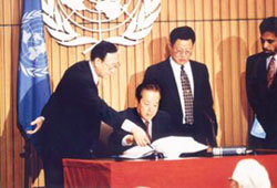 ????China has always maintained that the comprehensive ban of nuclear test constitutes an important step in the process of reaching the goal of complete prohibition and thorough destruction of nuclear weapons. In order to push forward the global nuclear disarmament process, Chinese Government proposed in October 1993 the conclusion of a Comprehensive Nuclear- Test-Ban Treaty (CTBT) through negotiations no later than 1996. Thereafter, China actively took part in the negotiations of the treaty. On July 29, 1996, China declared the moratorium of nuclear testing. China was among the first group of countries to sign the CTBT on September 24, 1996, when the Treaty was open for signature. Since then, China has actively supported and participated the preparatory work for the implementation of the treaty.