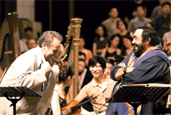 | Luciano Pavartti (R) jokes with Jose Carreras