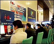Reporters Log on China.org.cn at Press Center for Sessions Information