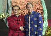 Chinese Prsident Jiang Zemin and the US President George W. Bush in Chinese-Style Costumes