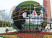 A globe with the "APEC" sign is placed on a flower bed at the new Xujiahui Park in Shanghai. The city gets ready for the upcoming Asia-Pacific Economic Cooperation summit next week.