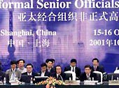 The fourth Informal Senior Officials Meeting of APEC 2001 opens at the International Convention Center in Shanghai on Monday , October 15 , 2001.