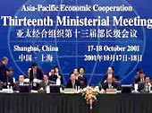 The 13th Asia-Pacific Economic Cooperation(APEC) 2001 ministerial meeting opened at the International Convention Center in Shanghai on October 17, 2001.