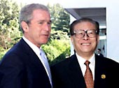 Chinese Prsident Jiang Zemin and the US President George W. Bush in Chinese-Style Costumes