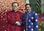 Chinese Prsident Jiang Zemin and Vietnamese Prime Minister Phan Van Khai in Chinese-Style Costumes.(10/21/2001)