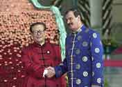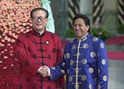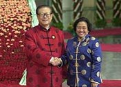 Chinese Prsident Jiang Zemin and Indonesian President Megawati Soekarnoputri in Chinese-Style Costumes.(10/21/2001)