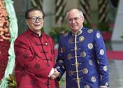 Chinese Prsident Jiang Zemin and Tung Chee Hwa, Chief Executive of the Hong Kong Special Administrative Region (SAR) of China, in Chinese-Style Costumes.(10/21/2001)