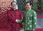 Chinese Prsident Jiang Zemin and Singapore Prime Minister Goh Chok Tong in Chinese-Style Costumes.(10/21/2001)