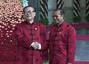 Chinese Prsident Jiang Zemin and Australian Prime Minister John Howard in Chinese-Style Costumes.(10/21/2001)