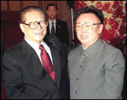Chinese Premier Zhu Rongji met with Kim in Shanghai. Zhu, who is also a member of the Standing Committee of the Political Bureau of CPC Central Committee, accompanied Kim to visit the Shanghai Urban Planning Exhibition Center, Shanghai GM Automotive Co., and Shanghai Huahong NEC Electronic Co.