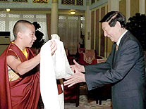 "Today, I'm very glad to see that you are both physically strong and well-versed in Buddhism and other knowledge, gaining more and more love and respect from the Tibetan people," Zhu said.