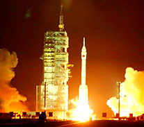 The "Long March II F" rocket blasted off at 00:40 a.m. (Beijing Time) from the Jiuquan Satellite Launch Center in northwest China' s Gansu Province.