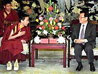 The 11th Panchen also offered gifts to Li Ruihuan, who said the 11th Panchen has made progress in various areas thanks to the care and support of the Party's leadership and departments concerned.