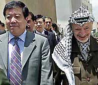 Arafat expressed his gratitude toward the Chinese government and Chinese President Jiang Zemin for sending Yang to visit Palestine at the hardest time for the Palestinian people.
