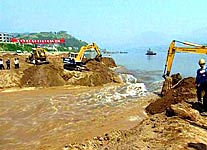 The damming is to cut the man-made diversion channel, built for the passage of ships during the second-phase construction of the Three Gorges Project, a project for permanently harnessing the Yangtze.