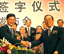 As international competition intensifies with China's joining the World Trade Organization (WTO), SOEs have accelerated the process of forming large conglomerates with international competitiveness. The Qingdao Haier Group Co. boosted its overseas operation revenue to 60 billion yuan (US$7.3 billion) in 2001, 48.3 percent more than in the previous year.
