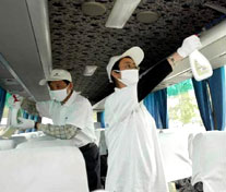 According to municipal communications committee, it is wise that bus drivers and conductors wear gauze masks, and an enterprise will be forced to suspend business operations once more than 10 percent of its vehicles are found not properly sterilized.