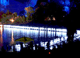 The performance venue, on a riverbank surrounded by 12 mountains, boasts 2,000 seats, from which the audience can see for two kilometers into the distance.