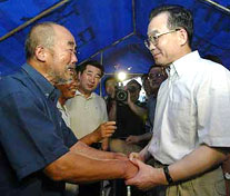 Premier Wen Jiabao is the highest-ranking Chinese government official to visit the region since torrential rain inundated the Huaihe River nearly two weeks ago.