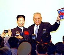 At the welcoming ceremony, Hong Kong Chief Executive Tung Chee Hwa said that from the very day of the success of the first Chinese manned spacecraft, Hong Kong people have been longing for seeing Yang Liwei in Hong Kong, and now the chance has come.