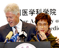 As former US President Bill Clinton shook hands with 21-year-old HIV carrier Song Pengfei at an HIV/AIDS summit yesterday in Beijing, he thanked Song.