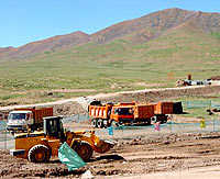 The Qinghai-Tibet railway, reaching 5,072 meters above sea level is at the dangerous and precipitous Tanggula Range, linking Xining, capital of Qinghai Province, with Lhasa, capital of Tibet Autonomous Region. It will be 1,956 km long, and have the highest elevation of any railway line in the world.