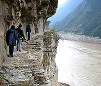 Along sheer precipices and overhanging rocks, the ancient Chinese created an amazing land communication network with just hammers and chisels. Today, as transportation conditions have naturally improved along the Yangtze River and the Three Gorges Reservoir begins to store water, the plank and stone cliff roads have nearly all but been forgotten.