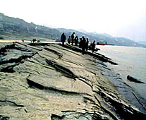 Before the Three Gorges Reservoir was filled, the rock ridge was concealed underwater during summer and autumn periods. As winter came and the water level dropped, the ridge would be revealed.