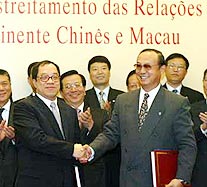 Vice-President Zeng Qinghong and the Chief Executive of Macao SAR, Ho Hau-wah, witnessed the signing of the CEPA.
