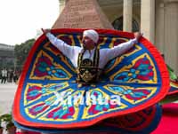 The photo shows an ancient Egyptian king is commanding royal attention in east China's Shanghai after the world's largest exhibition of ancient Egyptian treasures opened in the city on Saturday.