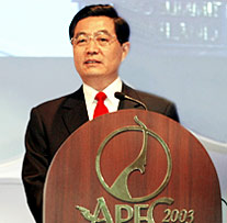 On China's economic performance, Hu said that China has overcome the negative impact of the SARS outbreak and have sustained the momentum of sound growth.