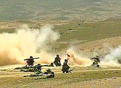 The live-fire drill, on the Pamirs at above 4,000 meters, involved encirclement, assault and mop-up practices, achieved "great success," said Major General Cheng Bing with the professional group of the joint training.
