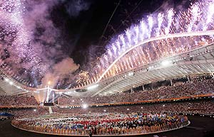 The Olympiad returned to its birthplace under the heaviest-ever security for a sporting event as the 28th Olympic Games started its opening ceremony Friday night.