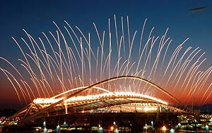 The Athens Games will go down in history as the heaviest-guarded one, with a 1.2 billion euros (US$1.5 billion) Olympic security package of about 70,000 personnel and a massive array of surveillance equipment, including a sensor-laden blimp, undersea sensors and street cameras that have already annoyed the Athens populace.