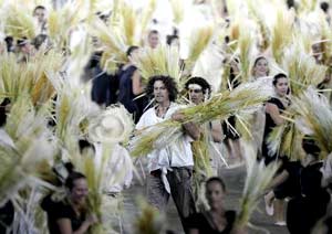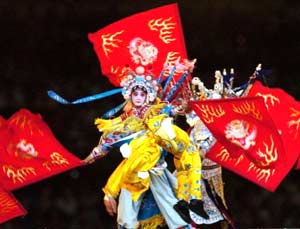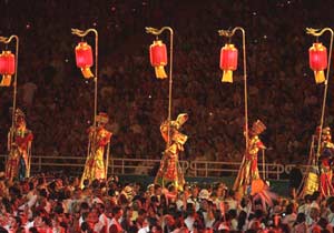 To invite the world to Beijing, an eight-minute Chinese gala show was put on the center stage at the end of the closing ceremony, with the performance reaching a climax when a young girl singing Chinese folk song 'Jasmine'.