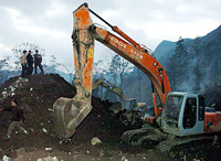 Recovery work is continuing but it is becoming more difficult to clear the site with the increasing accumulation of rocks and soil.