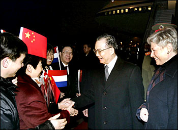 The premier, who came at the invitation of Jan Peter Balkenende, prime minister of the Netherlands and current president of the EU, said that since China and the Netherlands established diplomatic relations, ties have continued to develop, with fruitful exchanges and cooperation in political, economic, trade, scientific, technological, agricultural, educational and other fields.