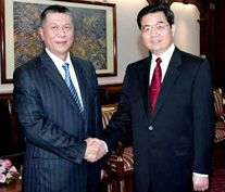 President Hu Jintao met with Edmund Ho Hau Wah, chief executive of Macao Special Administrative Region (SAR), on Sunday night.