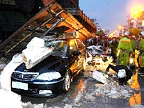 More than 180 buildings were collapsed during the heavy rainstorm which also tore down a tower crane and some tents at construction sites.