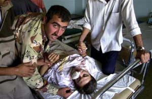 The local hospital was overwhelmed with the casualties. Every bed was filled, forcing many of the injured to sit on the floor amid pools of blood as frantic health workers treated them. One injured man sat against the wall, holding his head in his hands and weeping.