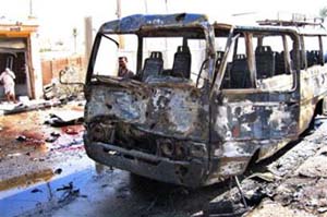 Dozens of burned bodies were strewn in the street and piled on curbsides, and vehicles, fruit stalls and shops were a bloody tangle of twisted metal from the blast, which targeted Iraqis lined up outside a police recruiting station. Most of the victims were civilians or from among the hundreds of men waiting to join the force.