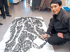 Liu has copied nearly 1,000 of the symbols, and made rubbings from some of the rocks. One of these is nearly two meters long and more than a meter wide. Experts he has consulted say that the long, narrow lines in the rubbing probably indicated a river, and the square images likely meant a settled community.