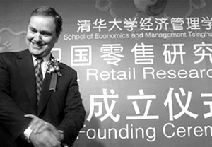 US retail giant Wal-Mart is investing US$1 million to establish China's first retail research center at Beijing's prestigious Tsinghua University. Lee Scott, president and CEO of Wal-Mart Stores Inc., attended the ceremony held on the campus on Tuesday.