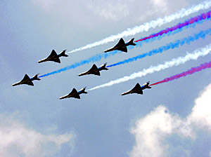 Five air force teams from Britain, France, Russia and China will give stunt demonstration flights for the viewers in the three days, the committee added.