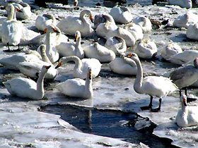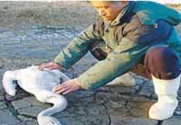 "Since last week several swans have died of thirst, and the number is increasing as the weather gets ice-cold," said Yuan Xueshun, director of Weihai Swan Protection Association.