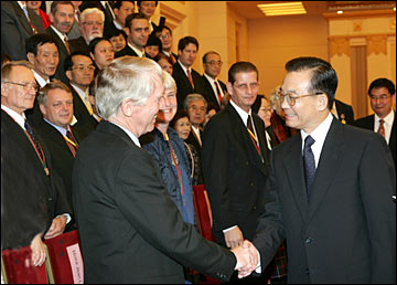 About 240,000 foreign experts come to China for work each year, and the foreign experts who have been awarded today are outstanding representatives of them, Wen said.