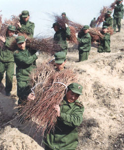 Professor Fang Zhendong, of the PLA's Logistical Engineering University, said that the focus of the army's environmental efforts is gradually shifting from afforestation to broader-based environmental protection.